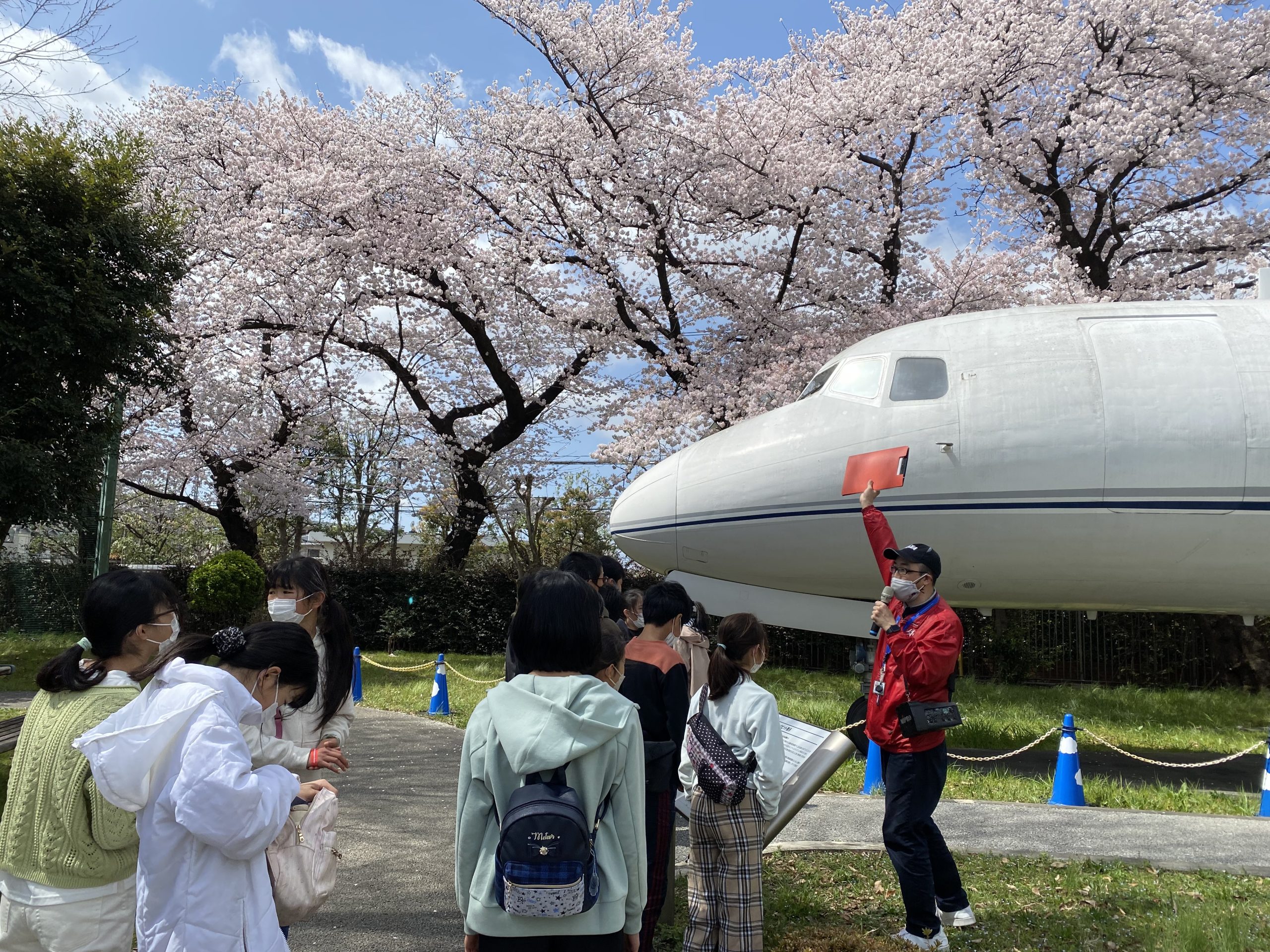 桜が満開の中、いちご狩りとJAXA調布見学を実施。以志井農園では完熟いちごをお腹いっぱい食べ、JAXA調布ではシュミレーター体験などを楽しみました♪